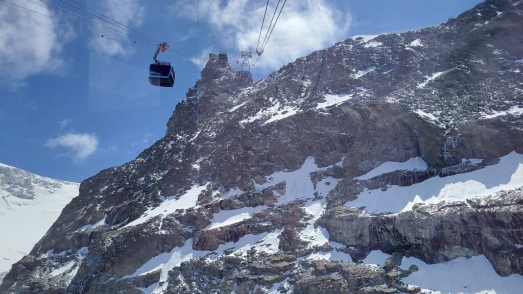Alternatively, take the cable car to the Klein Matterhorn at 3883m. It almost feels like you are eye level with the Matterhorn at this elevation. Be aware, the air is thin here. Continue onward with the Matterhorn Glacier Ride 2, the highest cable car crossing in Europe which brings you down to Cervinia on the Italian side of the Matterhorn. On this side of the border, they call the peak Cervin.